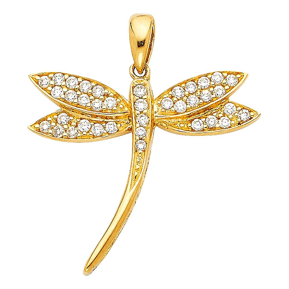 14k Yellow Gold Cubic Zirconia Dragonfly Pendant Necklace 22x20mm-Pendant for Women - 1.7 Grams