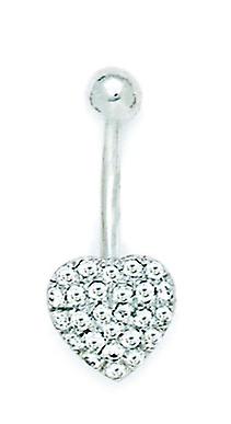 14k White Gold Cubic Zirconia 14 Gauge Dangling Love Heart Body Jewelry Belly Ring 26x10mm-Body Piercing-Ring for Women