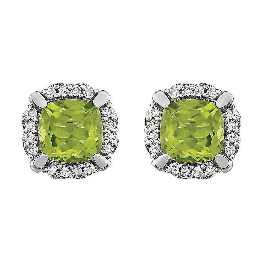 14k White Gold Peridot-Peridot and 0.1 Dwt Diamond Earrings Stud Earring for Women