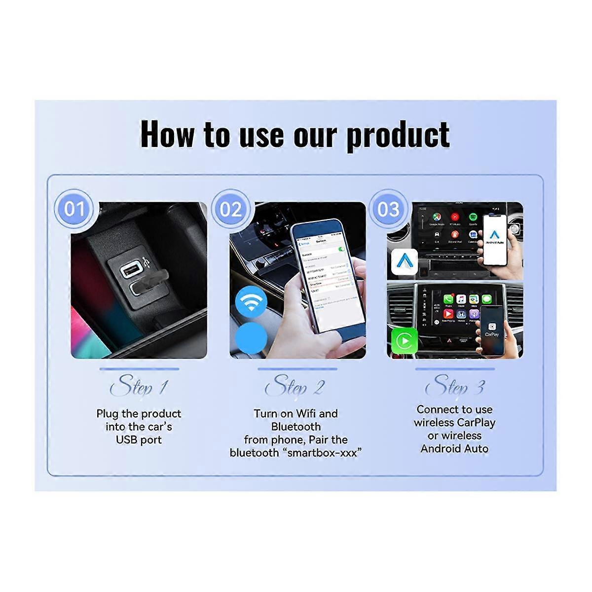 Model:2 in 1 AI BOX Carplay:Wired to wireless Android Auto:Wired to wireless The MINI 2in1 adapter is only suitable for cars with wired CarPlay or wired Android Auto. (Note: Carplay can only be connected through phones, android Atuo can only be connected through Android phones) Color: Black Material: Plastic Package Contents: 1 x Wireless Carplay Adapter Only the above package content, other products are not included. Note: Light reflection and different displays may cause the color of the item in the picture a little different from the real thing. The measurement allowed error is +/- 1-3cm.