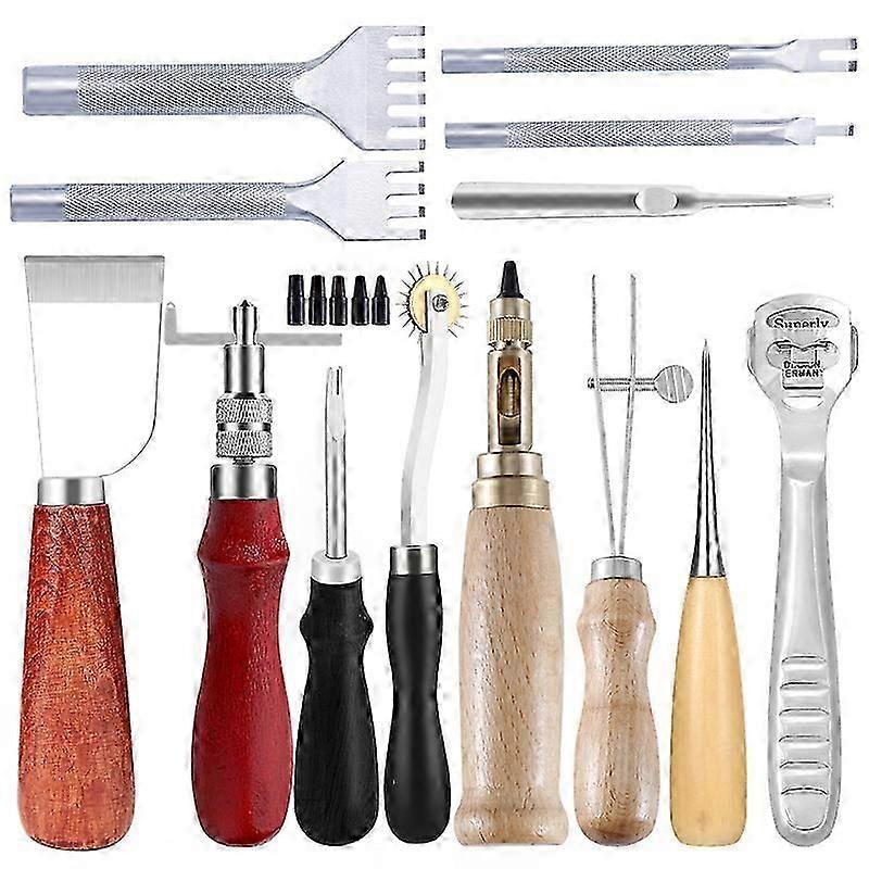 KAOBUY Professional Leather Craft Tools Kit Hand Sewing Stitching Punch Carving Work Saddle Groover Set Accessories DIY Tool