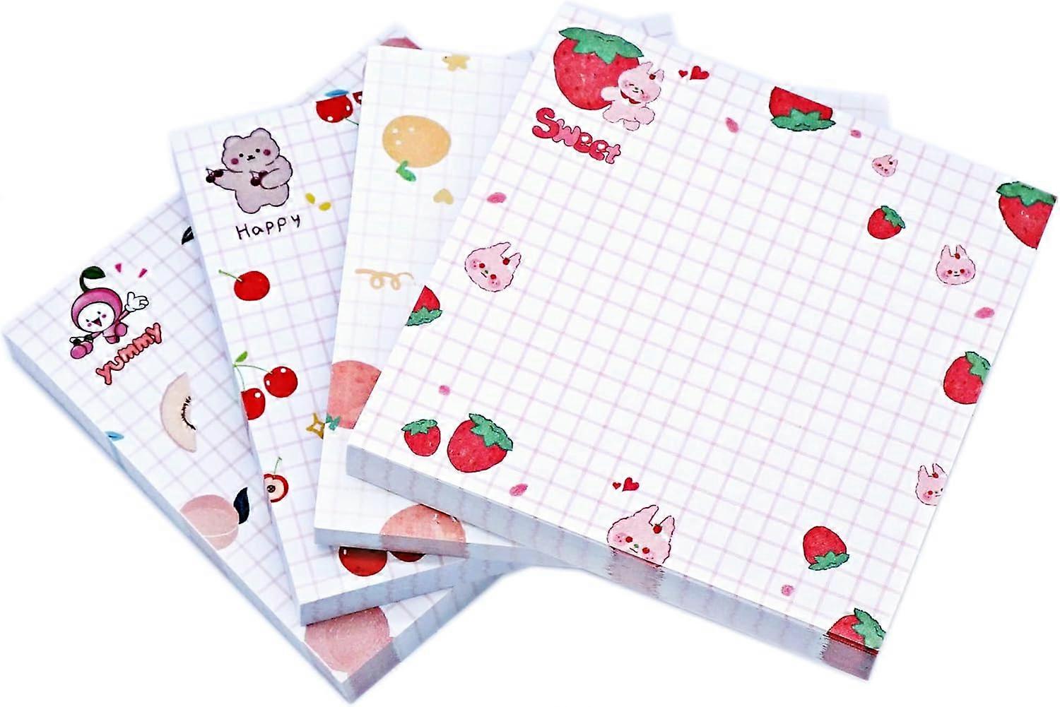 Kawaii Sticky Notes Set of 4 Self-Adhesive Note Strips with 4 Unique Cute Patterns, Colorful Super Sticky Fruit Designs