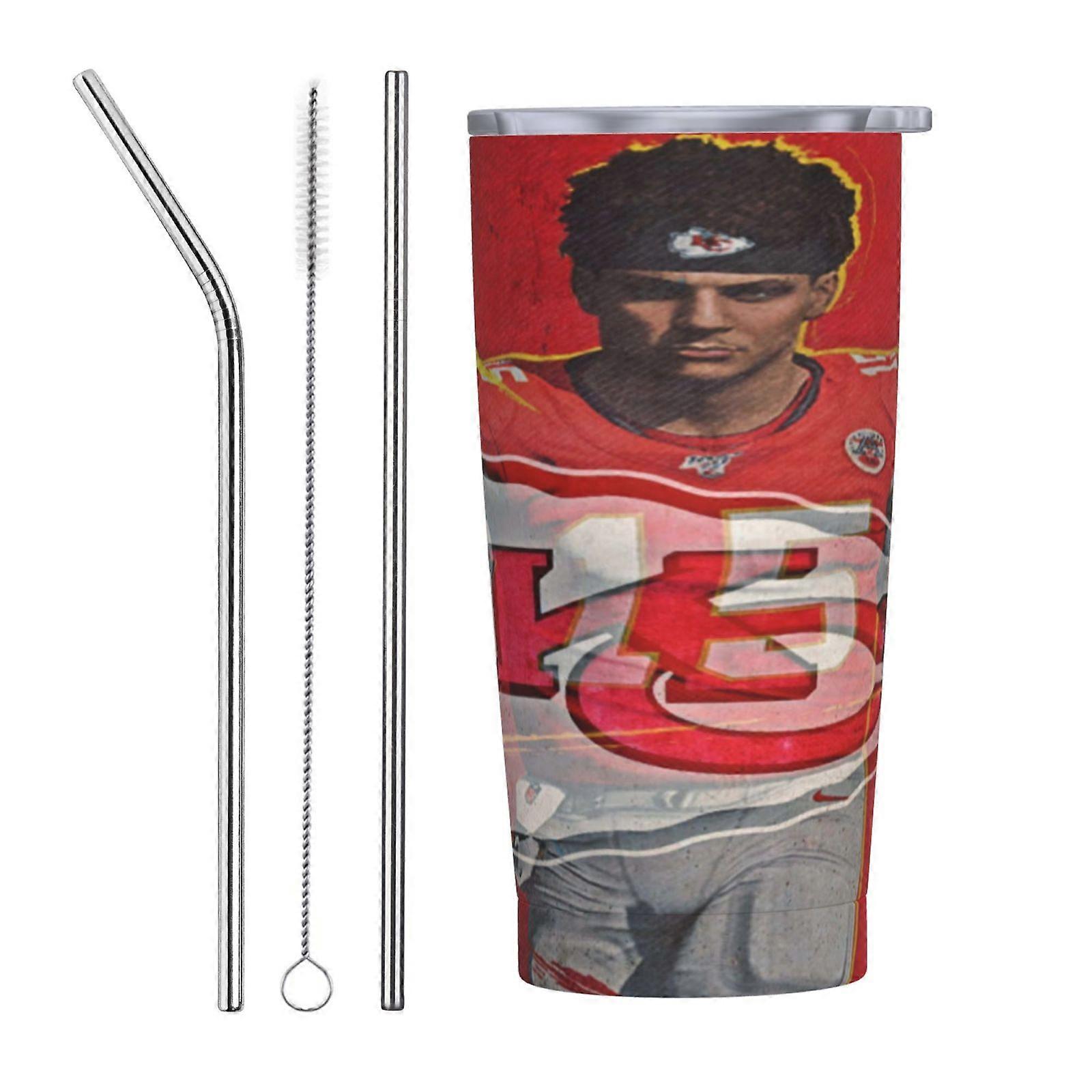 KC Chiefs 20 oz Car Straw Cup, Stainless Steel Insulated Travel Cup with Straw & Brush, Custom Fan Gift