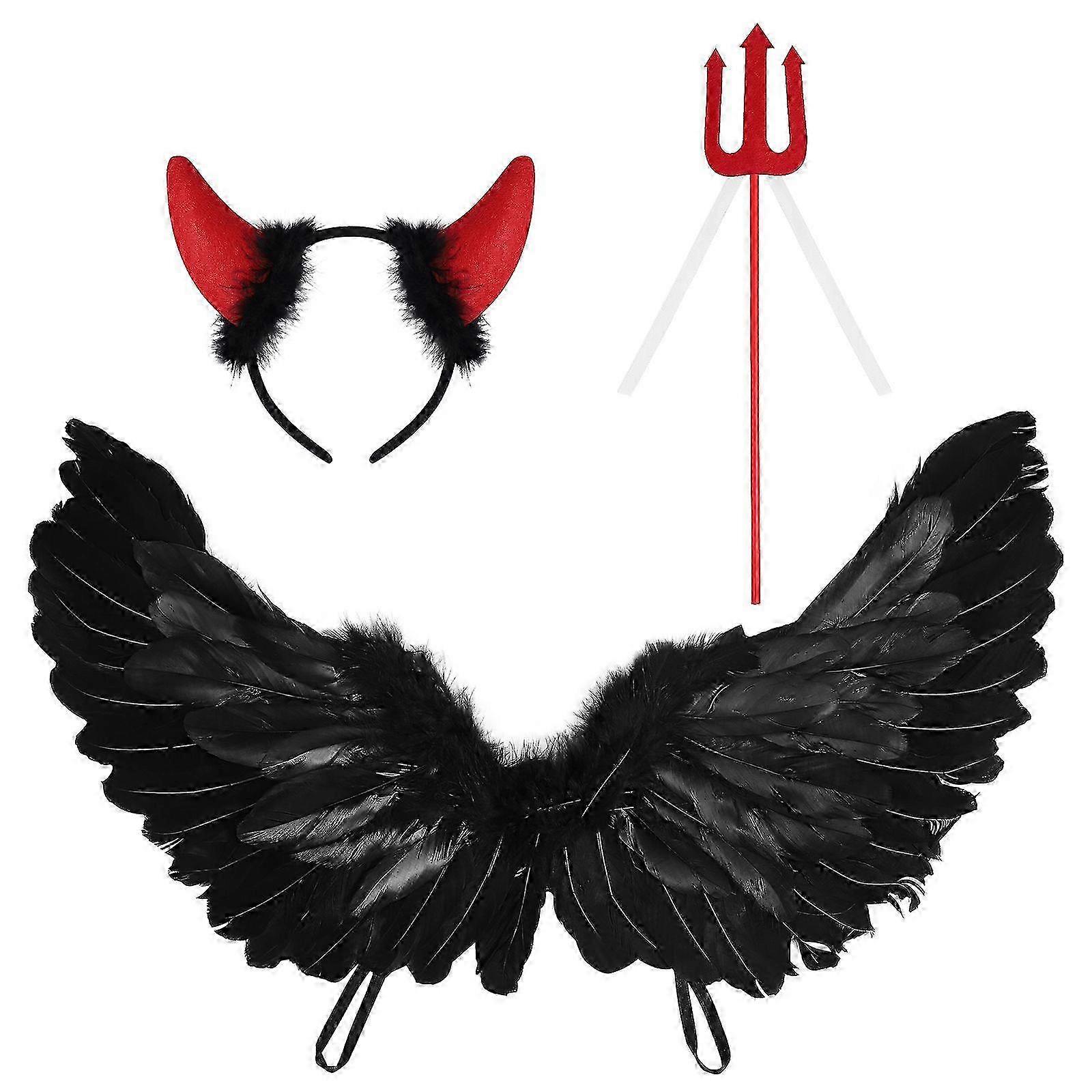 KESYOO Devil Wing Triangle Fork Headwear Set Halloween Cosplay Costume Set of 3 Party Supplies for Halloween Dancing Party