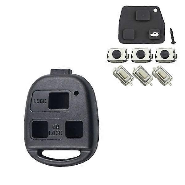 Upgrade your Toyota key easily yourself with compatible shells, keypads and buttons. Is your Toyota key missing its former glory? Maybe it has broken and needs to be replaced? Worry no more! With these Toyota compatible key kits, you can easily transform your worn-out key into one that looks brand new. Depending on your needs, you can choose complete key kits that include shells, buttons and keypad or choose just the keypad. It is a smooth process that you can do yourself without any special tools. This way you save time and money by avoiding expensive visits to the workshop. Perfect solution for all Toyota owners out there. The key shell is made of robust ABS and has durable rubber buttons, which gives you a quality feel when you press them. Protect and renew your key with this affordable option and remember, when you upgrade your Toyota key, you also upgrade your driving experience! Renew and protect your Toyota key in a simple way Easy to install yourself Material: ABS plastic, rubber Size: fits TOY41/TOY43/TOY47/TOY48 Compatible with: Avensis, Corolla, Yaris, Prado and several models (usually older models) Choose between different designs: 2 button model kit: Key shell, 2 buttons, 1 keypad, 1 screw 3 button model kit: Key shell, 3 buttons, 1 keypad, 1 screw Rubber button only (2) Rubber button only (3) Provides a better driving experience Affordable and time-saving Black design with rubber buttons