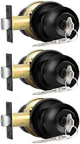 Keyed Alike Entry Door Knobs Black, Keyed Entry Locksets, Round Interior Door Knobs with Lock and Keys,3 Pack
