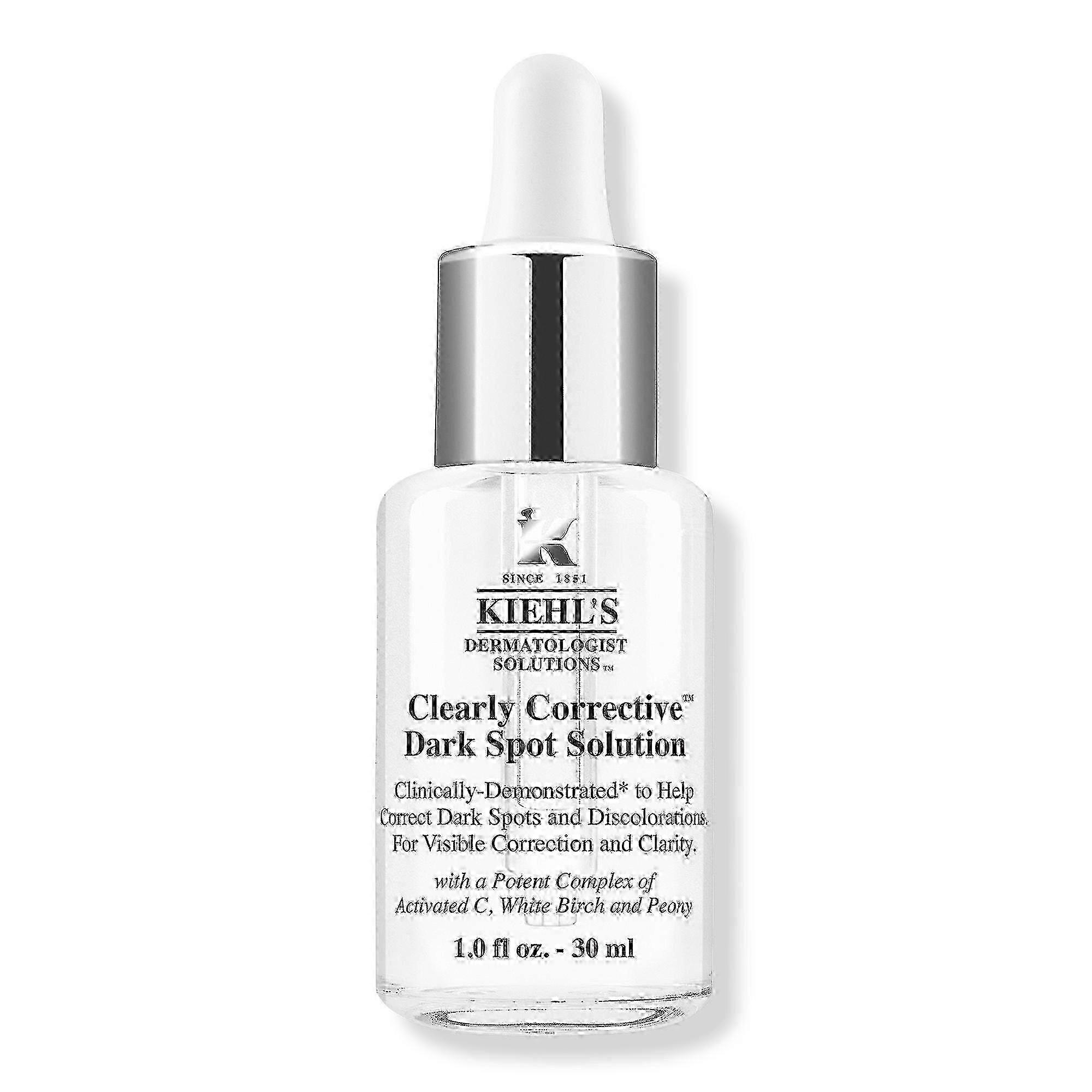 Kiehl's Clearly Corrective Dark Spot Solution: A brightening face serum with a potent form of Vitamin C and Salicylic Acid to help reduce the look of dark spots, hyperpigmentation & post-acne marks.BenefitsClinically-demonstrated* to help correct dark spots and discolorationsDark spot corrector visibly reduces a broad spectrum of dark spots including those caused by age and UV exposureHelps visibly reduce post-acne marks and hyperpigmentationHelps visibly brighten skin over time for a more even and radiant skin toneDermatologist-tested for safety and gentleness on all skin types, including sensitiveKey IngredientsActivated C (A potent form of Vitamin C): A stabilized form of Vitamin C that specifically addresses uneven skin tone and hyperpigmentation, goes to work immediately upon contact with the skinWithin Kiehl's formula, Activated C helps visibly diminish the look of dullness and uneven skin tone and helps increase clarity and brightness for a healthy-looking, more radiant complexionSalicylic Acid: Targeting skinâs surface, it works together with Activated C to visibly reduce discoloration and renew the look of skin's texturePeony Extract: Used in traditional Chinese medicine, Peony Extract is a natural antioxidant that helps protect against oxidative damage; In Kiehl's formulas, it works with Activated C to enhance skin clarityClinical ResultsAfter a 12-week clinical study of 17 women with all skin types showed:49% visible reduction in hyperpigmentation39% visible reduction in dark spots color27% visible reduction in post-acne marks*Results based on expert grading in a 12-week clinical test on 104 subjectsSuggested Use: Apply over entire face both day and night.Expiration Date: We have fresh stock each week with exceptional expiration dates prior to APRIL 2024. Products will expire no later than six months to 1 year after receipt.Product Packaging: Please note that some manufacturer may often change their packaging. This product may arrive different from what is pictured. We will always ship the most up-to-date packaging to our customers. Please contact us if you have any questions about this product or would like to request an older version of this product.Healthcare Disclaimer: Content on this site is for reference purposes only. OTC Shoppe Express does not represent or warrant that the nutrition, ingredient, allergen and other product information on our Web or Mobile sites are accurate or complete, since this information comes from the product manufacturers. On occasion, manufacturers may improve or change their product formulas and update their labels. We recommend that you do not rely solely on the information presented on our Web or Mobile sites and that you review the product's label or contact the manufacturer directly if you have specific product concerns or questions. If you have specific healthcare concerns or questions about the products displayed, please contact your licensed healthcare professional for advice or answers.