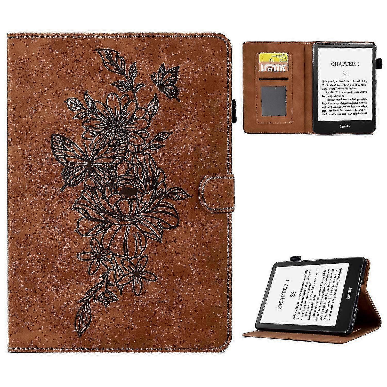 Kindle Paperwhite 1 2 3 4 Case PU Leather Stand Cover with Card Holder Butterfly Flower Pattern Brown