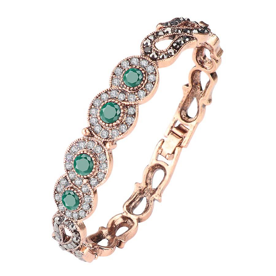Kinel Vintage Jewelry Wholesale Blue Resin Gray Crystal Flower Bracelet For Women Antique Gold Dubai Jewelry 2017 New