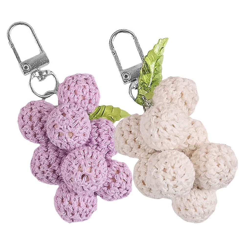 Knitted Grape Keyring 2Pcs Assorted Color Unique Handmade Purse Charms for Handbags Decor