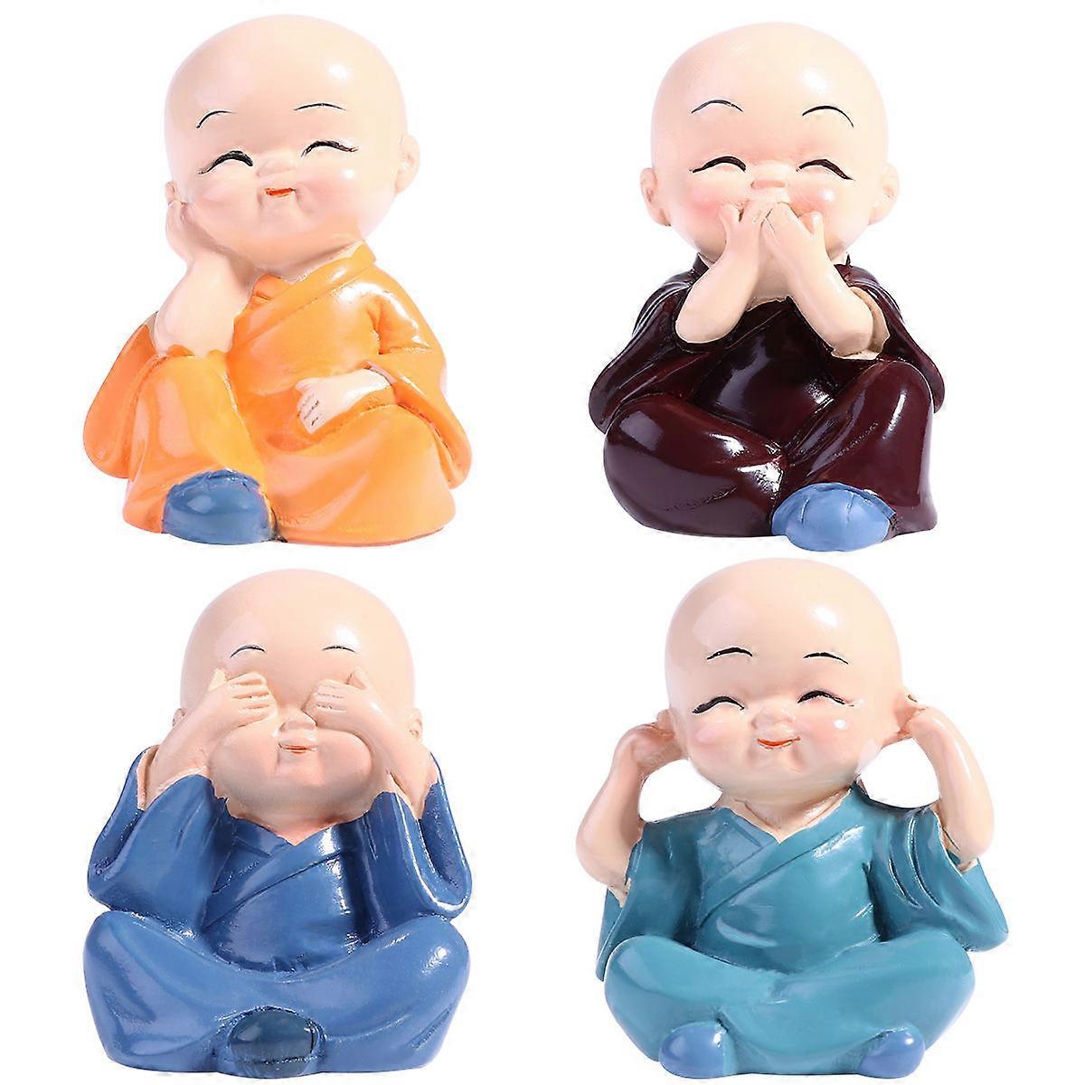 KongFu Monk Car Interior Decoration Resin Figurines for Home Car Display 4 Pieces Assorted Color