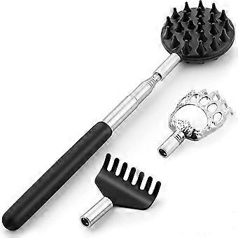 Kongqtee伸縮式30バックスクラッチャー、3個取り外し可能ヘッド、ポータブル拡張可能バックスクラッチャー(男性/女性用)、金属製ステンレス鋼マッサージャー/ Bac