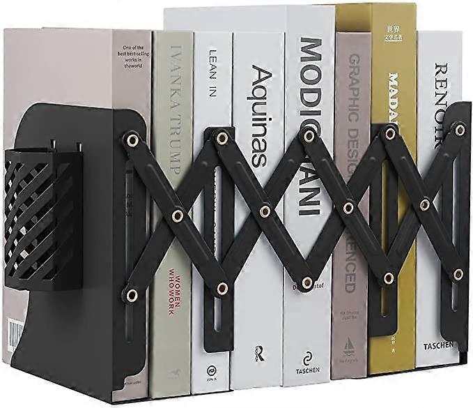 Kongqtee Expandable Bookend, Extra Long Telescopic Size Adjustable Bookends with Pen Holder, Metal Bookends Holder for Heavy Duty Books, Book Ends for