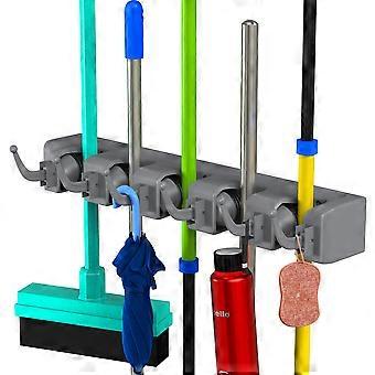 Kongque - Broom Holder Wall Mount with 5 Grippers & 6 Hooks Broom Holder Heavy Duty Plastic Holds Up to 42 lbs. Ideal for Garage, Kitchen, Laundry &