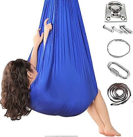 360 Rotating Mounting PlateMade of strong and sturdy 304 stainless steel which is anti-rust, wear-resistant, durable and high hardness to ensure safe use.The heavy-duty Mounting Plate can be securely mounted into beams, boards, concrete ceilings surfaces. The swivel hook allows 360-degree rotation, easily changing direction without any tangling or twisting chair rope so that the hammock chair never comes undone from the ceiling.Be safe and enjoy your leisure time. Great Gift For Special NeedsIdeal of this cuddle swing is designed for kids and teens who have Sensory Processing Disorder, Asperger's Syndrome, ADHD, Sensory Processing Disorder (SPD) or those on the autism spectrum. autism sensory therapy swing is designed with your child's needs in mind. The compression of the cocoon swing helps your child feel secure similar to getting a hug or being swaddled. Strong Capacity and No Overstretchkids Therapy sensory Swing hammock for kids and adults sensory swing is made of 100% Lightweight, Breathable Fabric. Tear-resistant, fully reversible and washable. Our 1.5m Therapy Swings are all Lateral elasticity,which ensures that the hammock will not be stretched too much. With heavy-duty construction and up to 200kg / 440 pounds of weight-bearing capacity. Now get it and bring joy to your family. Occupational Therapists Trust Occupational therapists and autistic schools often recommend children to Sensory Swing Chairs. Swing Therapy Chair can strengthen the head, neck and core muscles, thereby improving physical activities such as walking and running. Kids can cocoon completely in the indoor therapy swing and motor planning skills while establishing spatial and body awareness! It is a great way for your kids to spend a stressful day! Multi-Usage and Easy InstallationPackage Included : 1 x Therapy Swing for kids, 1 x Connecting rope,1 x Extension tape,1 x 8th steel lock,4 x Expansion screws,1 x 360 Rotating mounting plate. Our Kids Swing Chair can be installed both indoor and outdoor, such as in children's bedrooms, living rooms, balcony, courtyards, parks and so on. Kids can take a nap, read, play, do air yoga, etc.Recommended for ages 3 and up. frozen chair hanging swing swing chair indoor kids pod swing sensory integration toys