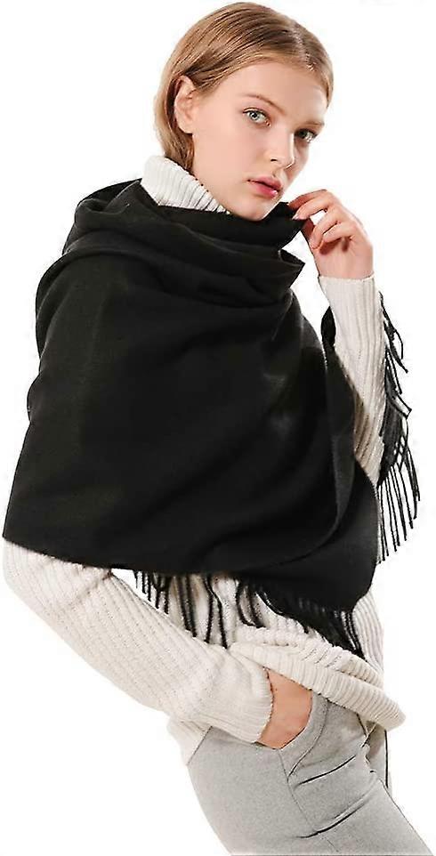 Kongque - Scarf for Women Gift Idea Cashmere Scarves Warm Wool Wrap Shawl for Winter Black