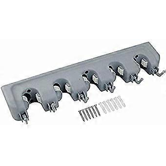 Kongque Mop Broom Holder Wall Mounted Mop Storage Rack with 5 Position 6 Hooks for Brush Mops Heavy Duty Broom Gripper Tidy Clamp Organizer for Home B