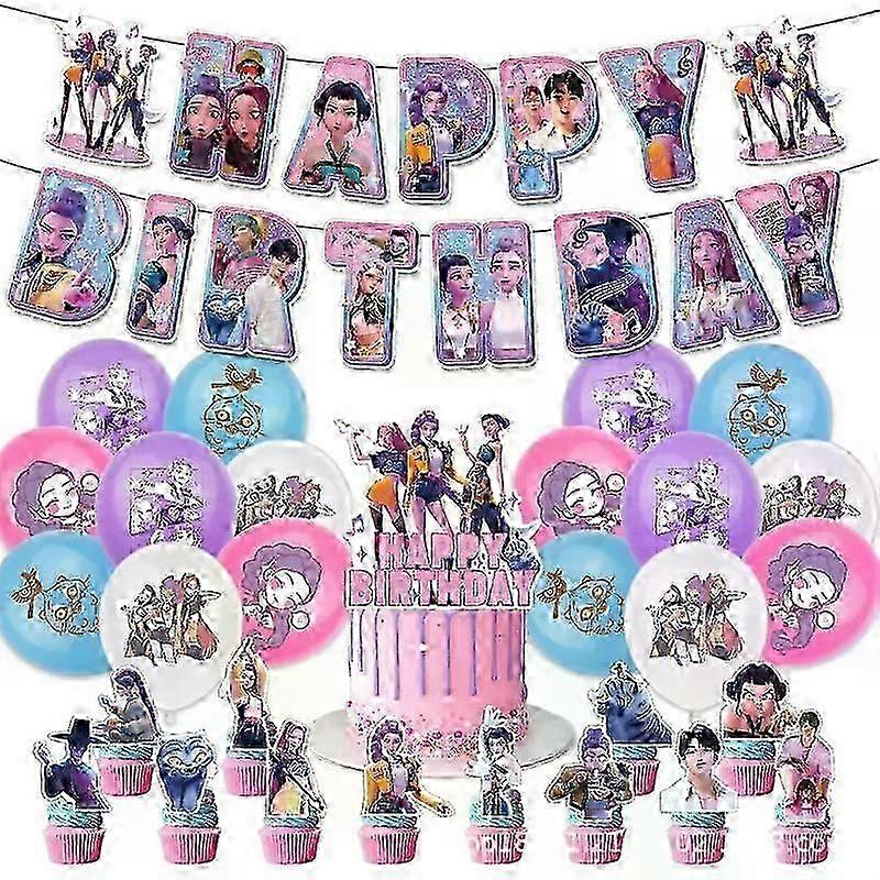 Kpop Demon Hunters Birthday Theme Party Decorations Banner Cake Balloons For Kid A
