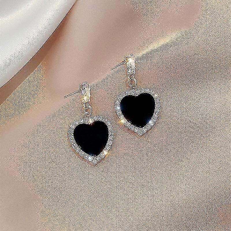 KSRA Black Geometric Heart Drop Earrings with Crystals 2025