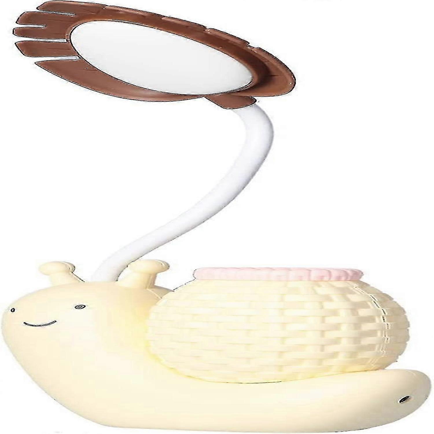 KINZON LED Desk Lamp with Pen Holder Cartoon Animal Snail Multi-Function Table Lamp USB Charging Cute Gooseneck Desk Lamp for Students Kids Light(Yell
