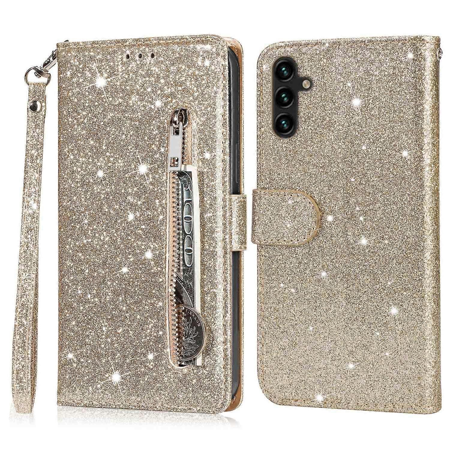 L2d For Samsung Galaxy A56 5G Stand Case Glitter Phone Leather Cover r4Q Zipper Pocket - Gold