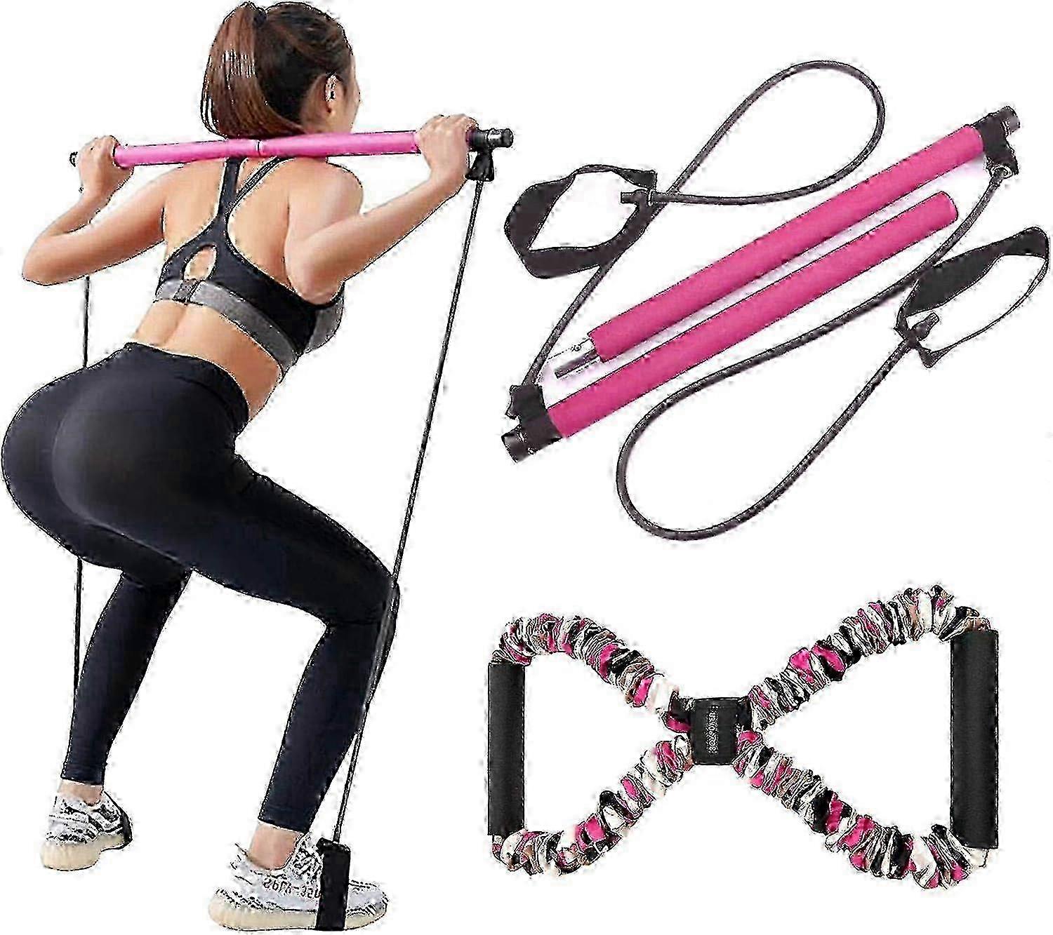 LADER Portable Toning Bar Yoga and Pilates Equipment with 8-Shape Body Shaping Resistance Band 25-Pound Capacity - Pink