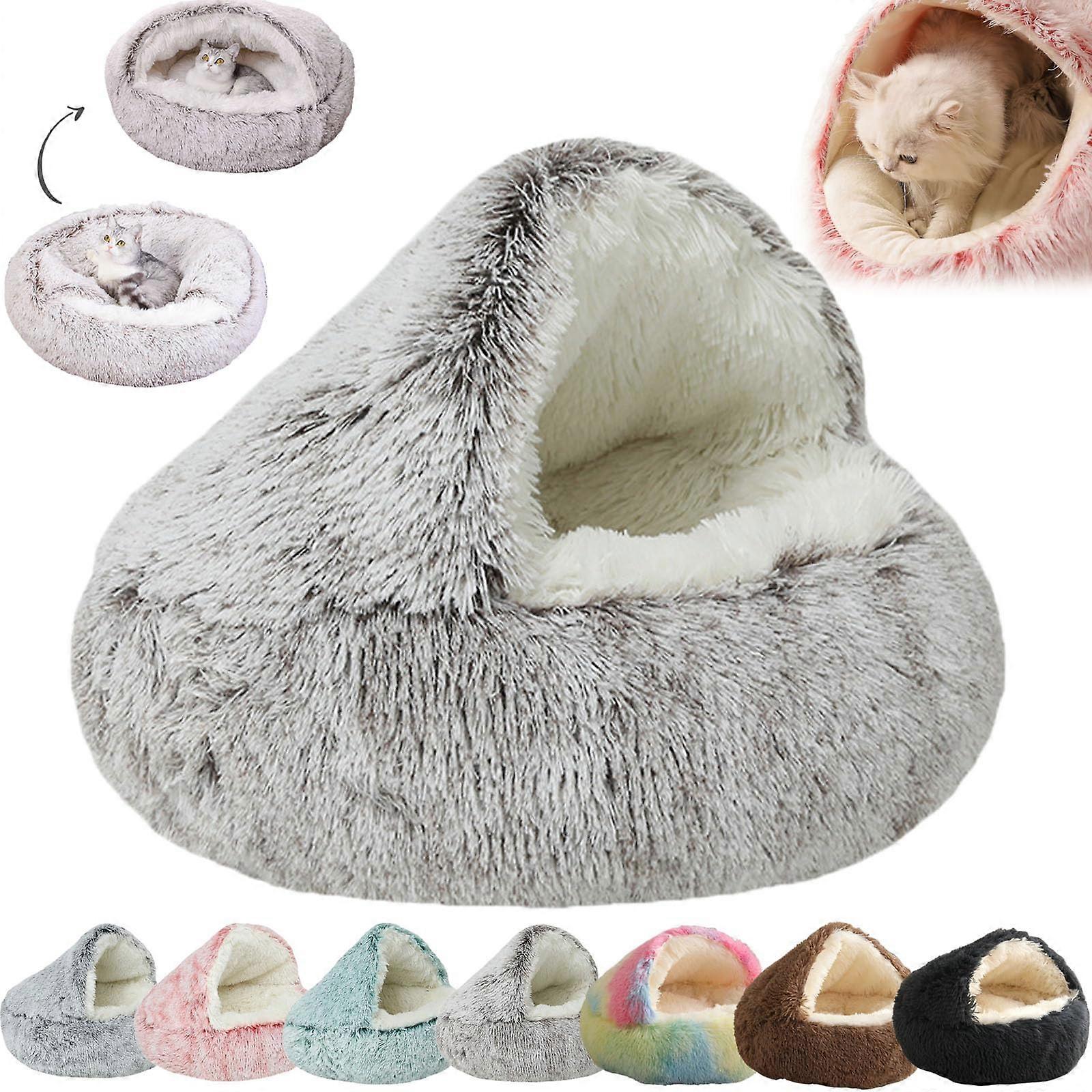 Lapcatz Nest Bed Large 26in Coffee, Soft Plush Covered Dog Cat Bed, Anti-Slip Washable Indoor Pet Cave