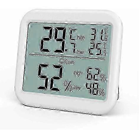 DescriptionLarge Clear LCD Display-With a large clear LCD display, it is easy to read the temperature and humidity values. It is an ideal choice for interior decoration like bedroom, kitchen and living room.[Precise Measurement] - Temperature Range: -10C~+50C (14~158F) / Humidity Range: 10%~99%). Temperature and humidity measurement accuracy is 1C/5%.[Maximum and minimum display] - The device displays the maximum and minimum values of temperature and humidity. It's easy to check for subtle changes in temperature and humidity every day.[C/F switch] - the button on the back of the thermometer. Short press to switch between Celsius and Fahrenheit. Long press to delete the highest/lowest temperature value.[Portable Design] - Desktop stand, hanging hole and magnetic folder design can be conveniently placed anywhere in the house. Powered by 2 AAA batteries (not included).Specification:Measurement range: temperature: -1050 (14 to 158)Humidity display: 10%~99%Accuracy: temperature: 1C; humidity: 5%Resolution: temperature: 0.1C; humidity: 1%Powered by the following equipment: 2 AAA 1.5 V alkaline batteries (not included)Display mode: LCD(Length x Width x Height): about 10.5 x 9.5 x 2.5 cm / 4.13 x 3.74 x 0.98 inchNoticed:Please replace the battery when the screen becomes dimIf you work in a high frequency radio field, for example near a mobile phone, or if you receive an electric shock, it may affect the performance of the device.Accuracy of temperature and humidity: 1C / 5%. The value deviation is the acceptable range, which is normal.We recommend that you restart the thermometer and replace the batteries with new ones.At the same time, the thermometer should be placed for a while, do not touch the thermometer to see if the temperature value changes.Please allow slight deviation in the measurement data and make sure you don't mind before ordering.