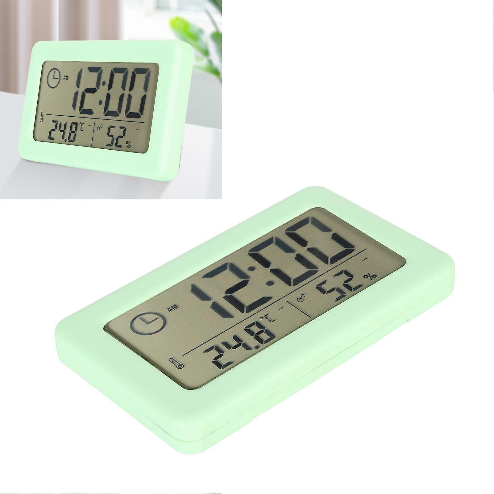 LCD Digital Clock Multifunctional Quiet Nocturnal Light Sensing Electronic Alarm Clock for Home Bedroom Green Item Type: LCD Digital Clock Material: Plastic Product Use: Gifts, Etc. Battery Type: Button Battery Battery Type: CR2032 (Shipped With Built In Battery) Battery Capacity: 240mAh Number Of Batteries: 1 Color: Green Size: Approx. 9.6x1x5.8cm / 3.8x0.4x2.3in