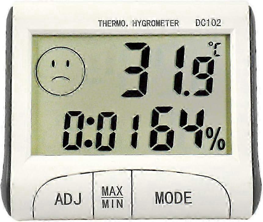 Easy to adjust: Only 3 three buttons to adjust this hygrometer thermometer. ADJ - Current time setting. MAX/MIN button - Press the "MAX/MIN" button to read the maximum and minimum values of temperature and humidity. MODE: Current time setting and 12/24 hour display. Large visible HD LCD display: Clear and obvious display of temperature and humidity values. Easy to read numbers. With a strong magnet - works well on the fridge and also has a stand for it to stand on. 12/24 hour display models, just press the MODE button to switch. Switch from Celsius to Fahrenheit, just use a little stuff to insert into the hole on the back of the thermometer and find the button to press. Widely used for food, homework, bathroom, etc. training, sports, games, office, etc. One button battery power supply (not included), take out the prepared battery into another hole to start working.