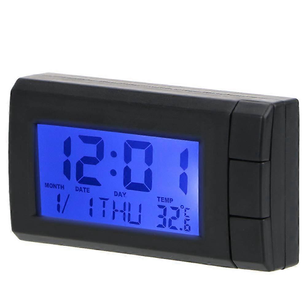 LCD Digital Self Adhesive Car Clock with Temperature Display - Blue Backlightblack1pcs)