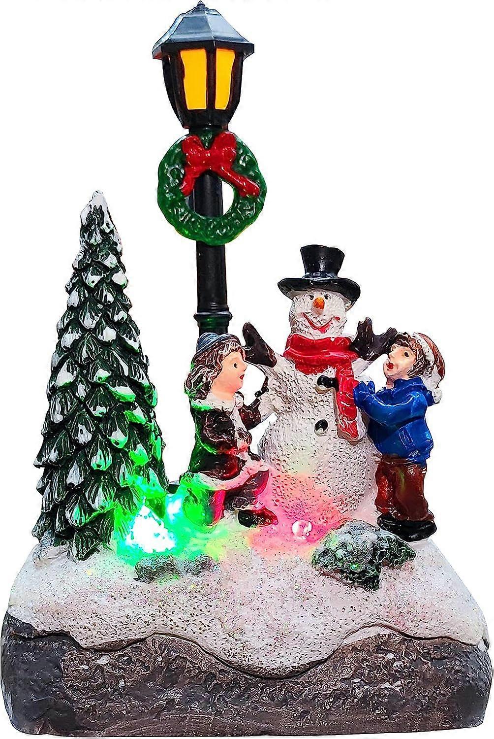 LED Christmas Light Up Scene Snowman Scene Christmas Lights Battery Powered Christmas Scene Ornament for New Year Holiday Christmas Decorations (White