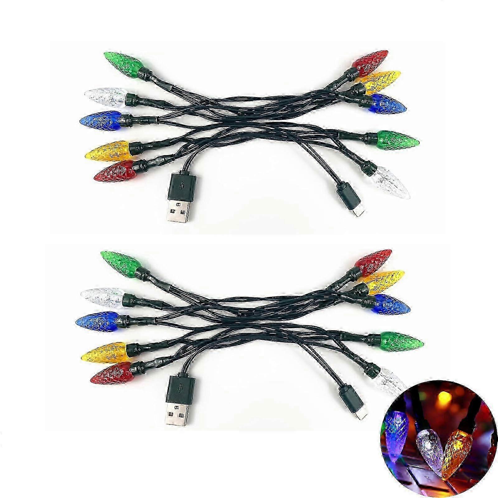 LED Christmas Light Phone Charger Cord USB and Bulb Charging Cable 50inch 10led Multicolor (2pcs)
