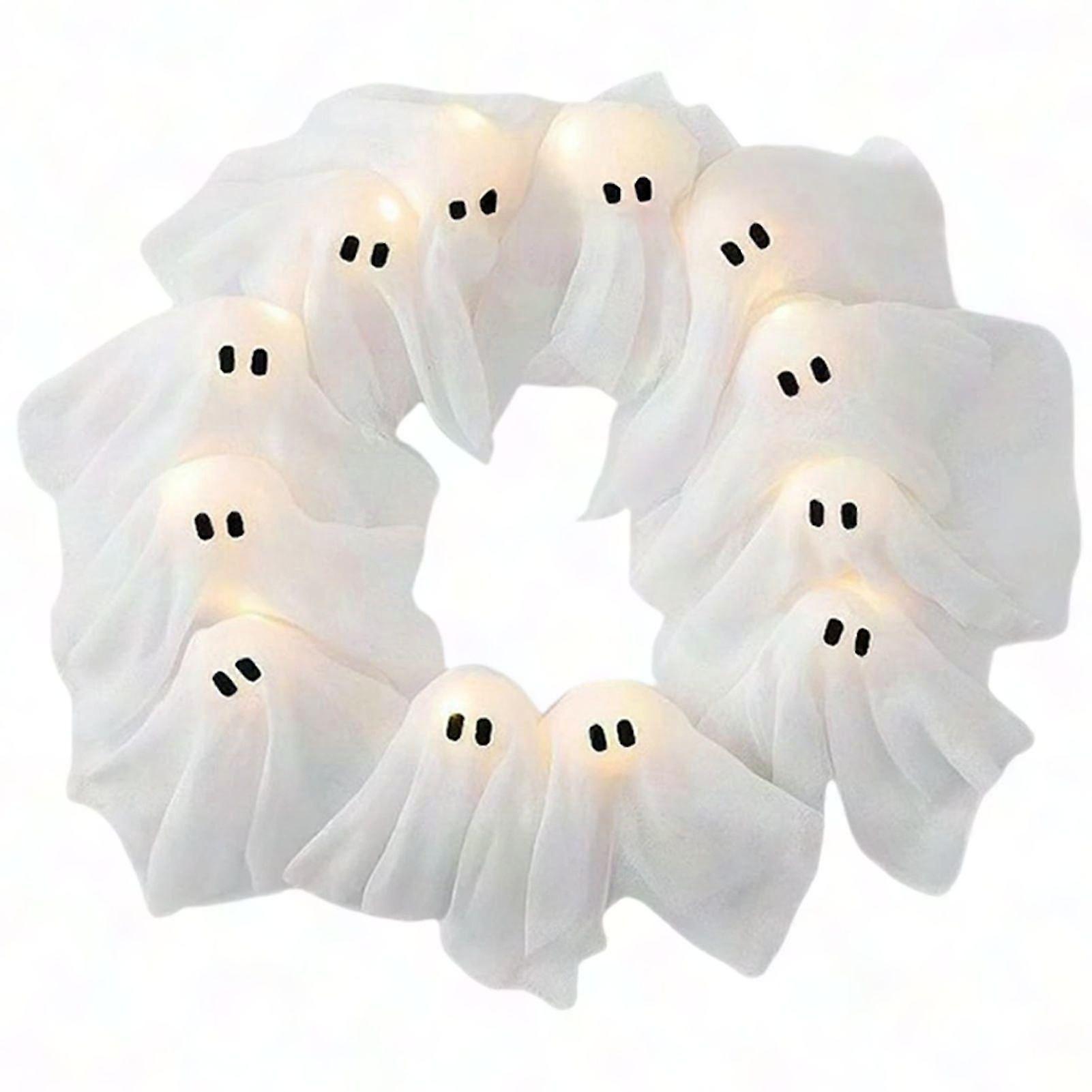 LED Ghost Wreath Halloween Light-Up Garland for Porch Door Party Decorations