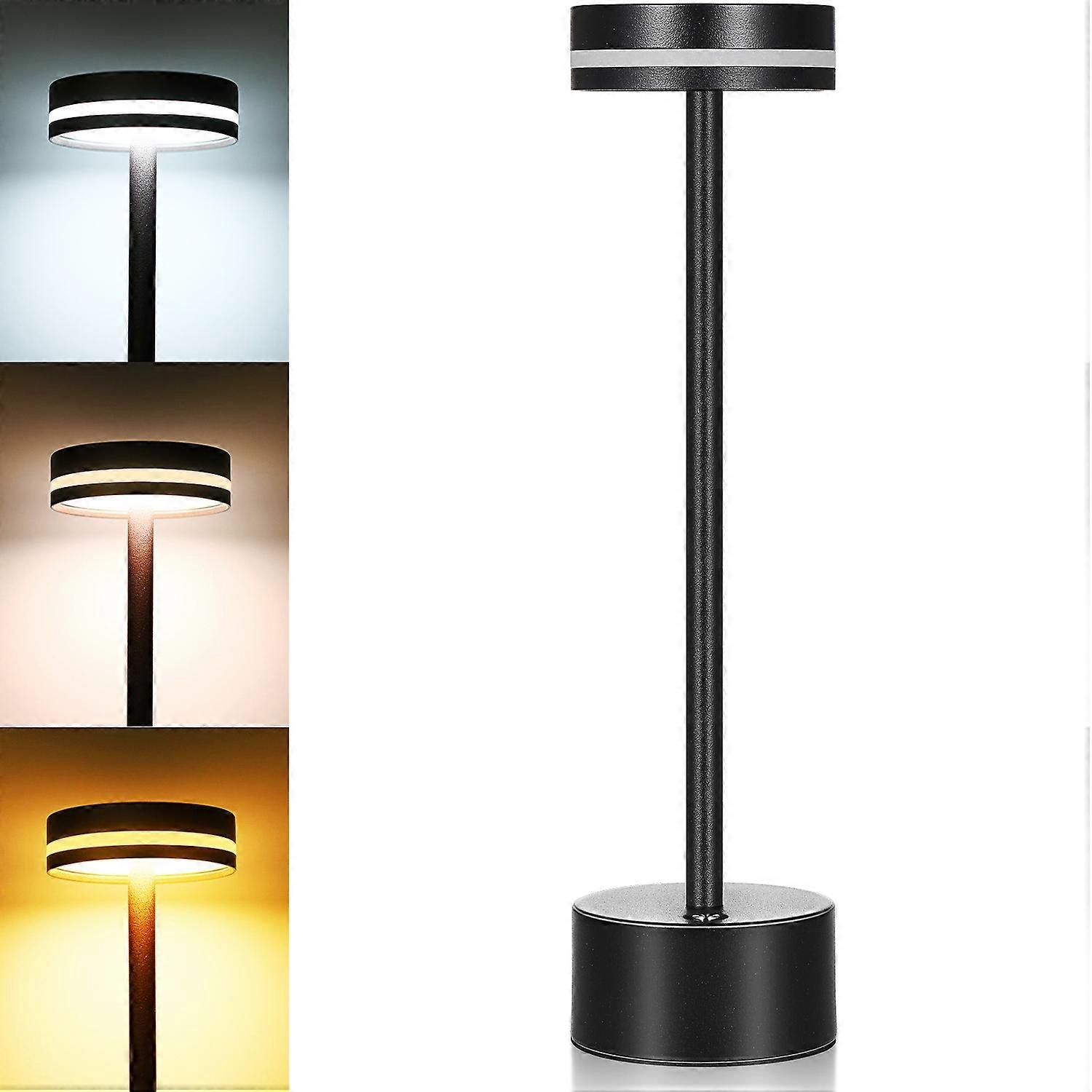 LED Cordless Table Lamp Metal Bedside Nightstand Lamp Touch Control Stepless Dimmable 3 Light Colors