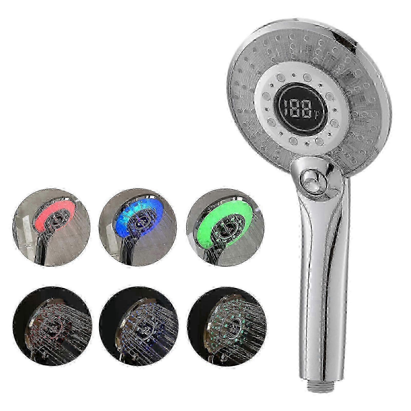 LED Shower Head, Rain Shower, 3 Colours, Colour Changing Temperature Control, Hand Shower with Digital Temperature Display, Large, Water-Saving