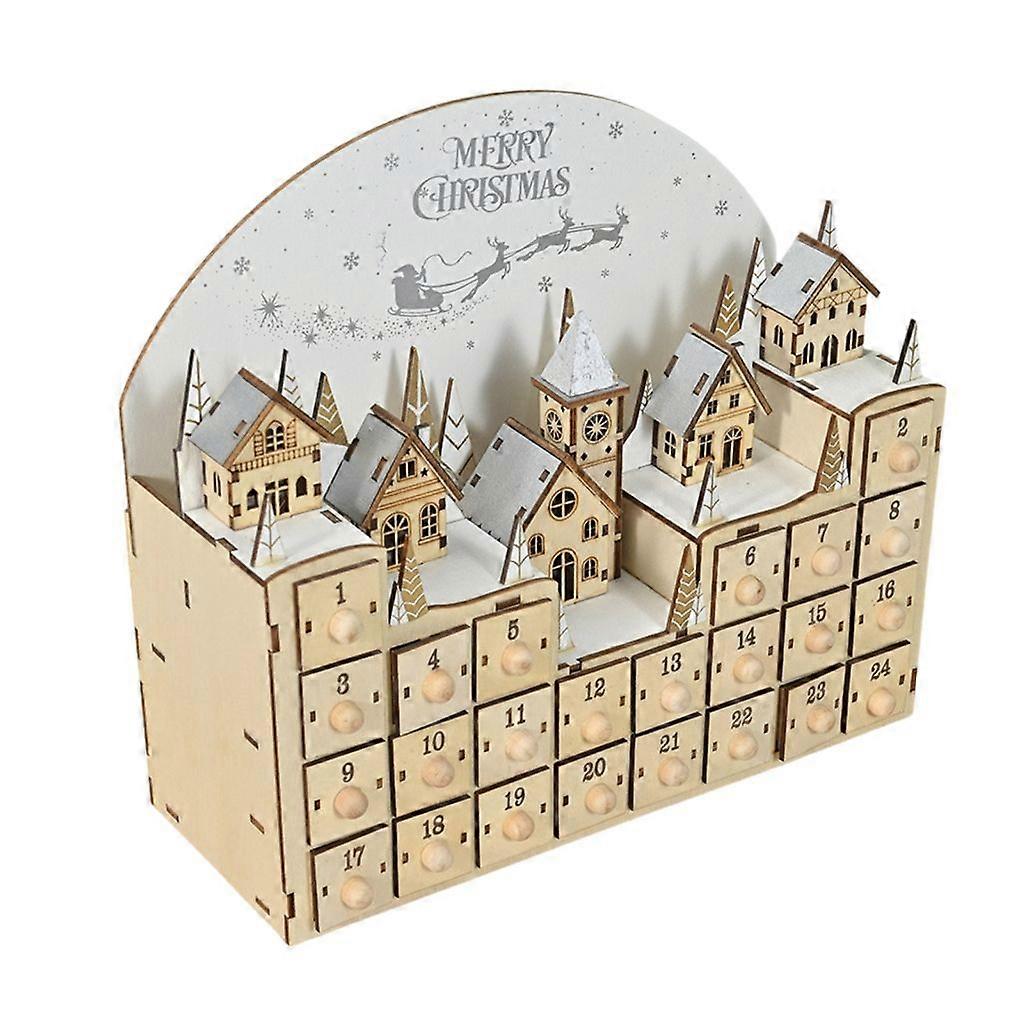 Wood Christmas Countdowns Calendar with LED Scene and 24 Surprise Drawers