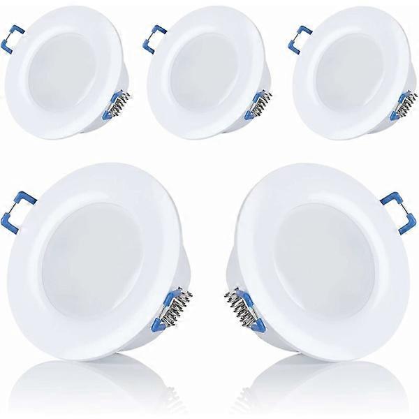Set of 5 LED spotlight, recessed, for bathroom, IP44, 230 V, extra flat, 5 W, available in warm white and cool white, round, white, for bathroom, Op