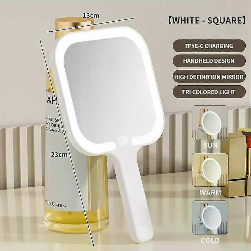 LED Smart Makeup Mirror Hand-held Carry 3 Colors Adjust Bright with Touch Screen Cosmetic Tabletop Vanty Mirror Travel Home Use