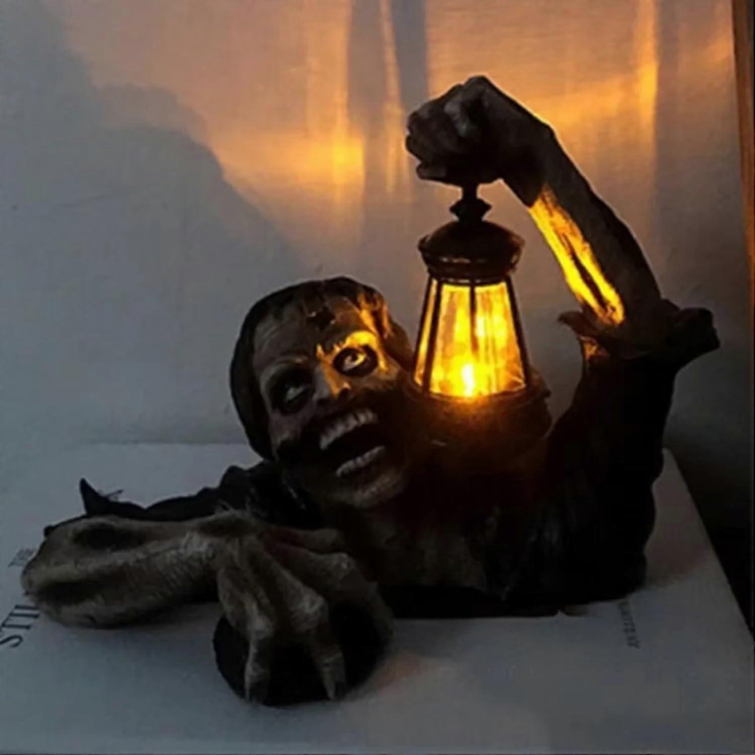 LED Zombie Lantern Halloween Crawling Horror Decor Scary Holding Lantern Zombie Outdoor Figurine Light Yard Lawn Garden Decorate