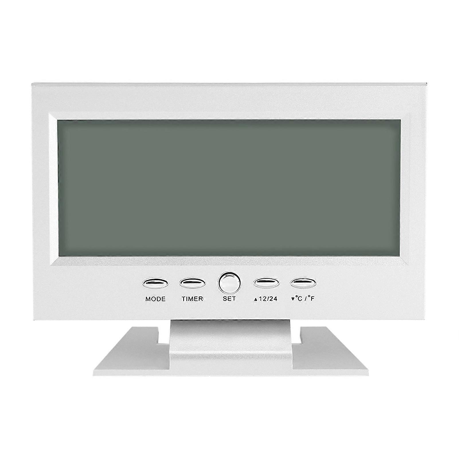 LED Digital Calendar Clock Blue Backlight Large Display Multi-Function Desk Clock Silver Battery Powered Time & Date Display Temperature Monitorin