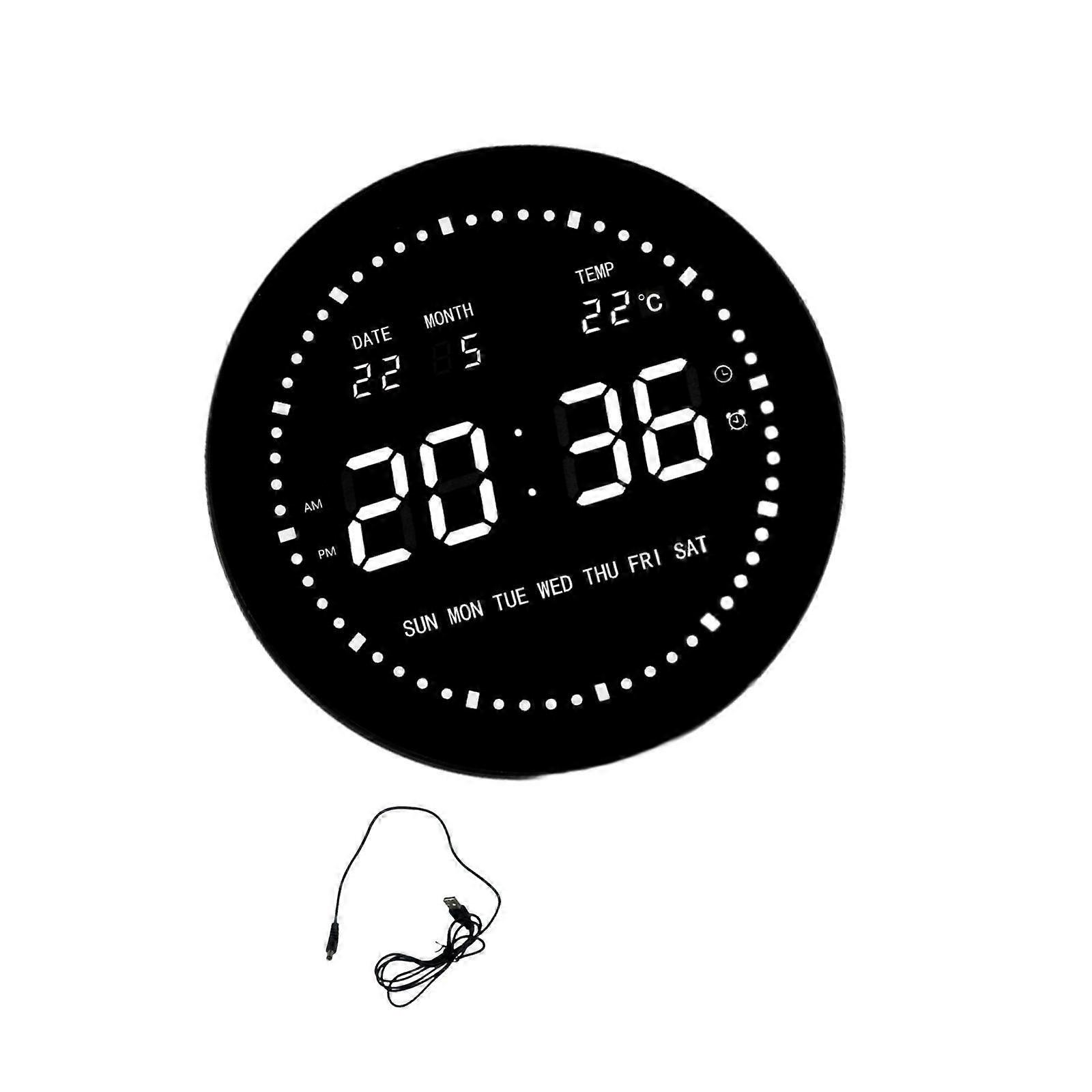 LED Digital Clock Round Alarm Clock Calendar Multipurpose Tabletop Clock Wall