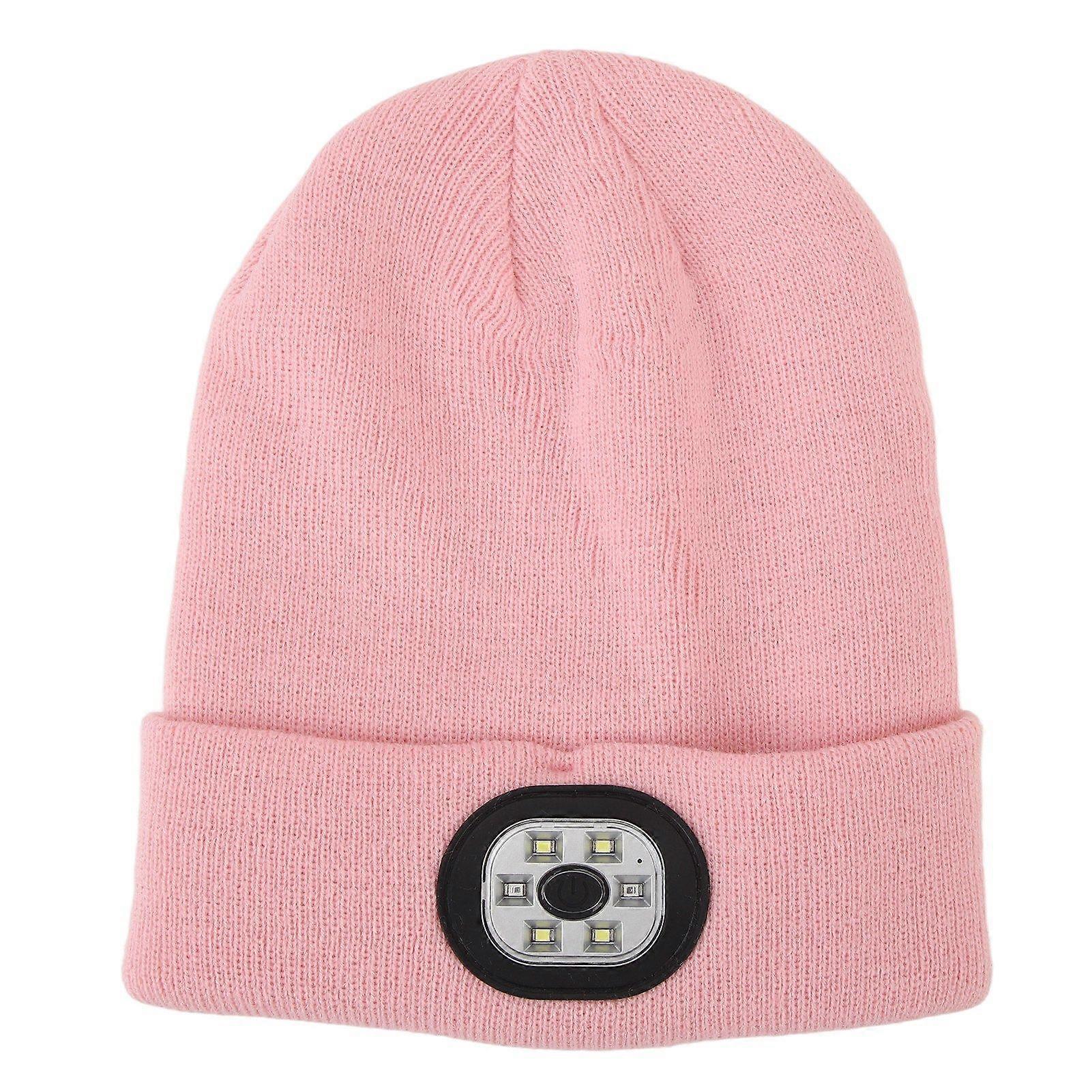 LED Knitted Hat Multifunctional Warm High Brightness Outdoor Sports LED Hat with Light for Night Running Riding Pink YMHC
