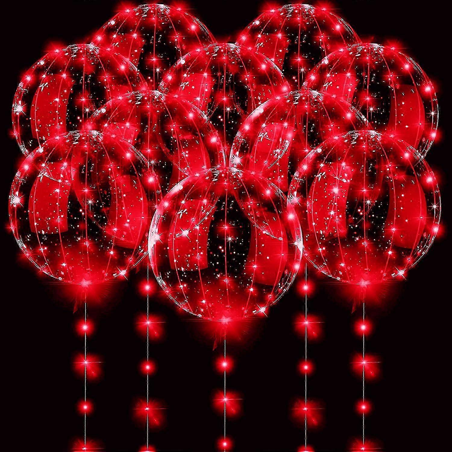 LED Balloons 10 PACKS, 20 Inches Light Up BoboBalloons Helium Style,Glow Bubble Balloons for Christmas Wedding Birthday Valentines (Red light)