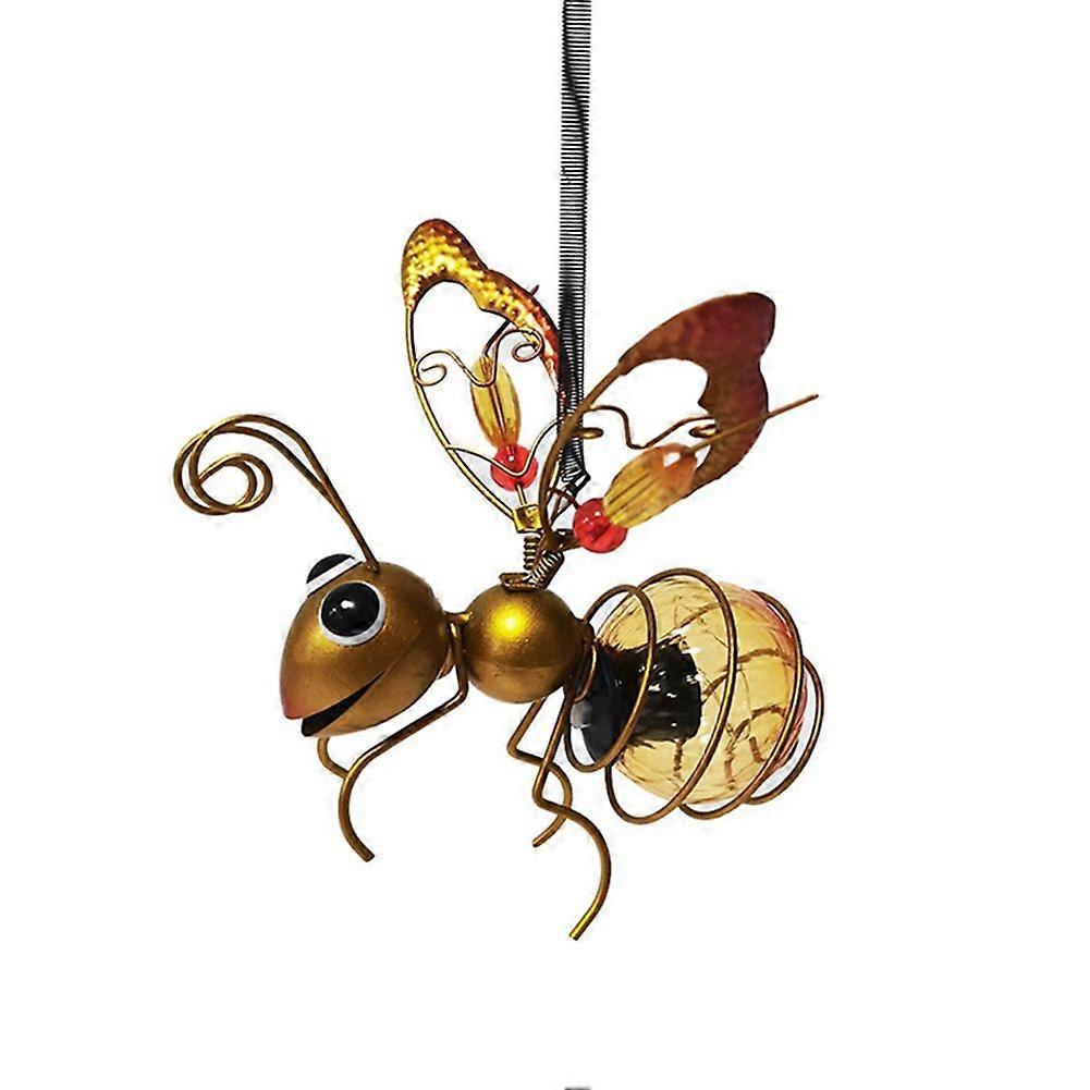 Solar Iron Insect Statue with LED Fairy Light Outdoor Hanging Tree Ornament for Fence Yard Courtyar