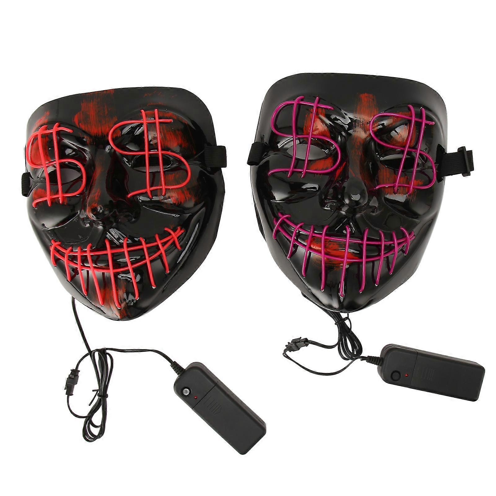 LED Face Cover 3 Modes Adjustable Size Breathable Scary Light Up Face Cover for Halloween Costume Party 2pcs