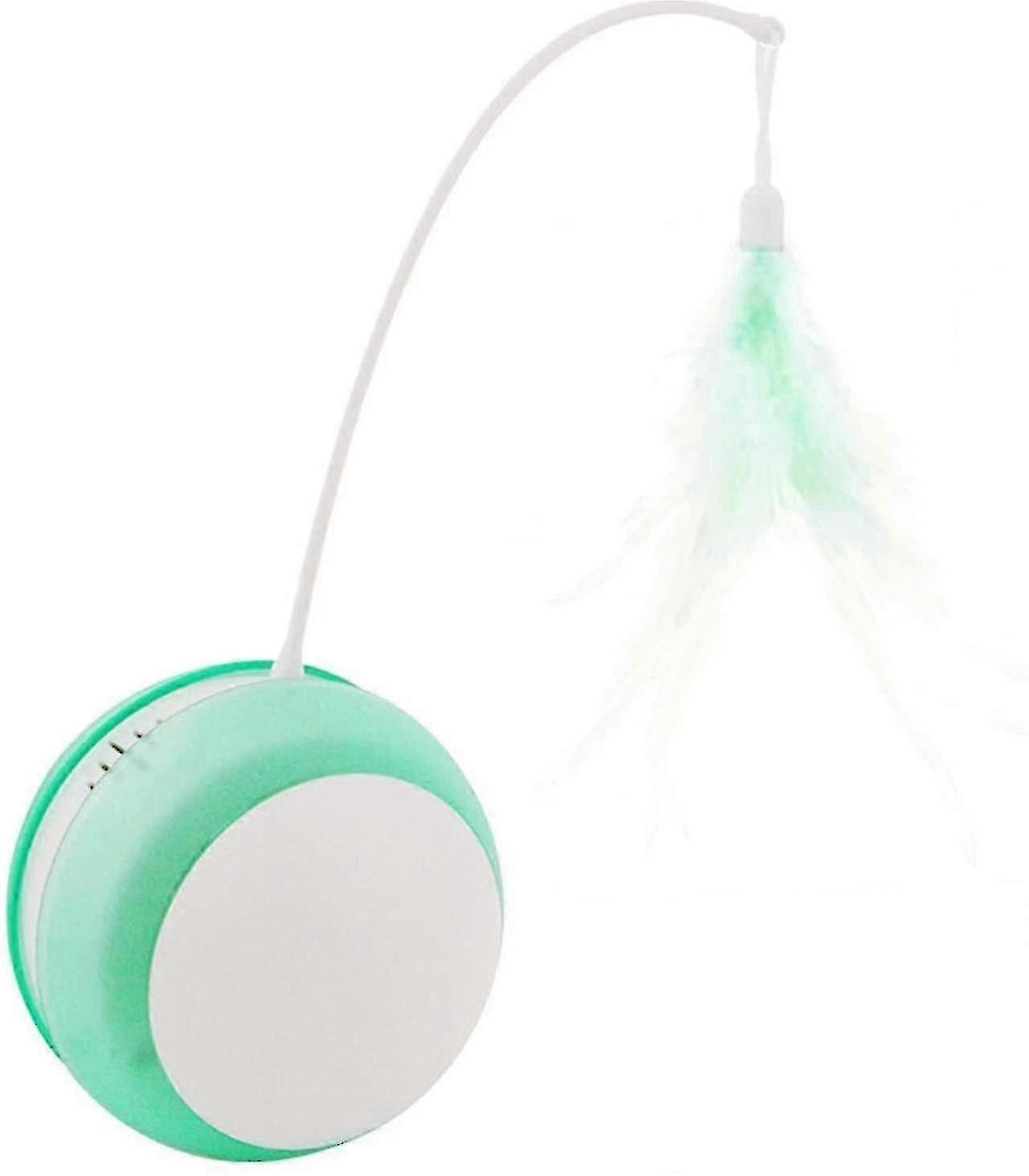 Electric Cat Toy with LED Feather, Automatic Rolling Ball, Anti-Fall Fishing Rod, Funny Pet Supplies, Green Tumbler Toy