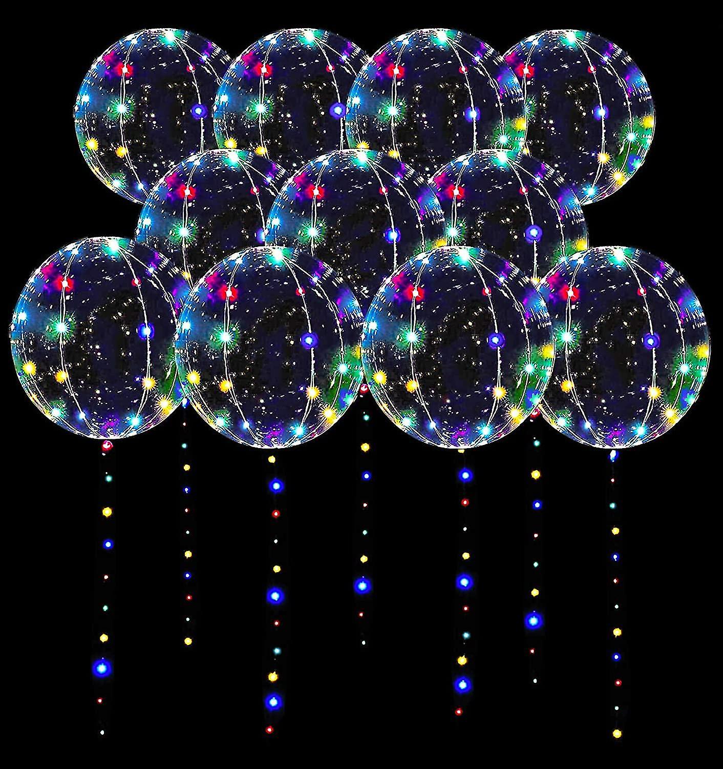 Led Bobo Balloons, 10 Pack Led Light Up Balloons, Glow Transparent Bubble Balloons