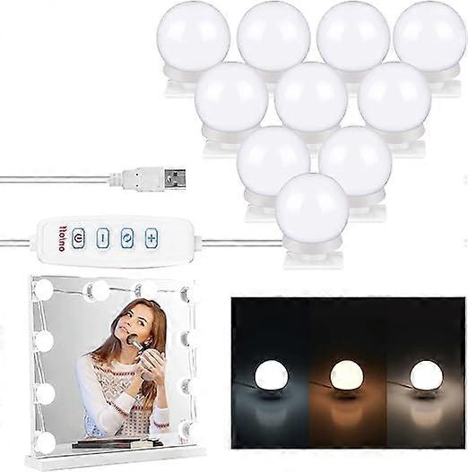 LED Mirror Light Dimmable Mirror Light, Hollywood Style 10 LED Vanity Lights, Three-tone Dimming, USB Rechargeable Mirror Light Vanity Light