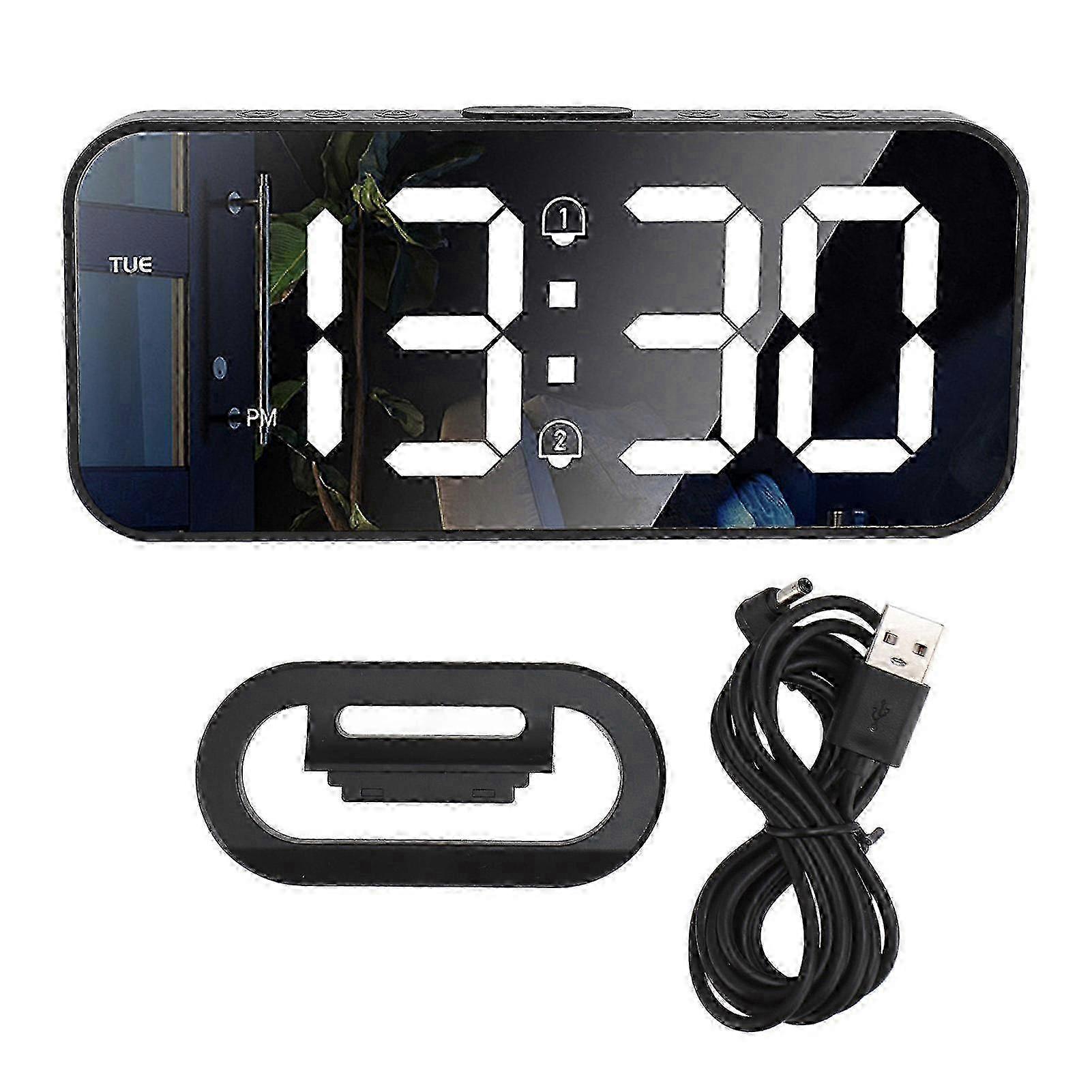LED Mirror Electronic Clock Adjustable Brightness 6.7 Inch HD Digital Alarm Clock for Bedroom Living Room Office Black Shell White Number